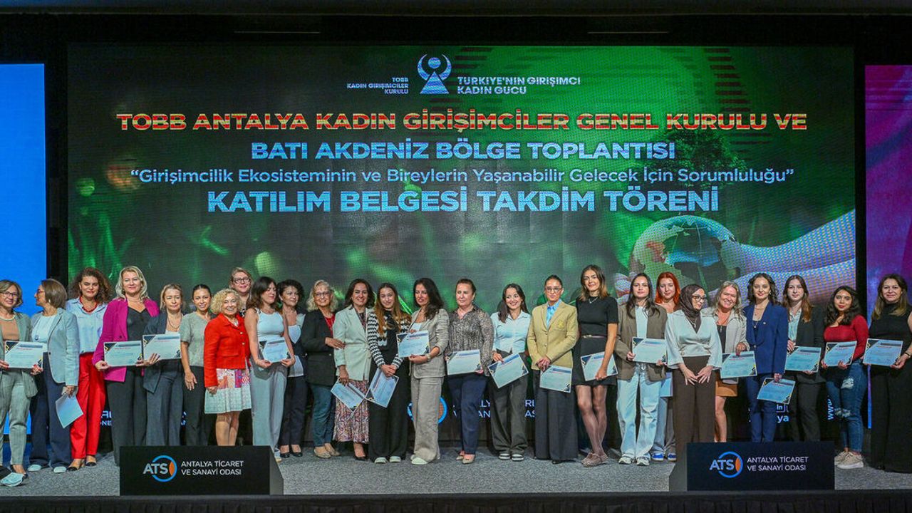 Antalya Ticaret ve Sanayi Odası’nda gerçekleştirilen TOBB Antalya Kadın Girişimciler Kurulu Batı Akdeniz Bölge Toplantısı ve İl Kurul Genel Kurulu, girişimcilerin ve bireylerin “yaşanabilir bir gelecek” için üstlenmesi gereken sorumlulukları gündeme taşıdı. Toplantıda çevre, gıda ve doğal kaynakların tasarrufu konularında önemli sunumlar yapılırken, üniversite öğrencilerine yönelik dört yıldır süren mentorlük projesi kapsamında mentorlere sertifika, öğrencilere ise katılım belgeleri verildi.
