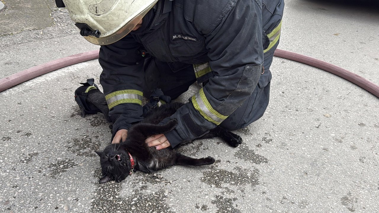 Yanan dairede kedi olduğunun öğrenilmesi üzerine bir itfaiye eri içeride hayvanı aradı. Dumandan etkilenen kediyi dışarı çıkartan itfaiye eri, hayvana kalp masajı yaptı. Uzun uğraş sonucu kediyi yaşama bağlayan itfaiye eri, gülümseyerek hayvanı öptü. Kediyi alan daire sahibinin damadı ise hemen veterinere götürdü.