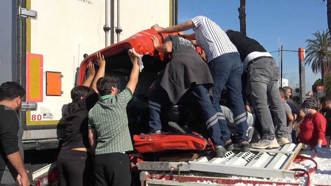 TIR'ın dorsesine ok gibi saplanan kamyonette bulunan sürücü Tahsin A. ile beraberindeki Selçuk S. kabinde sıkıştı. Kazayı gören diğer sürücülerin ihbarı üzerine olay yerine çok sayıda itfaiye ve sağlık ekibi sevk edildi. Sıkışan sürücü ve yolcuyu kurtarmak için yoğun çaba harcayan itfaiye ekipleri zamanla yarıştı.
