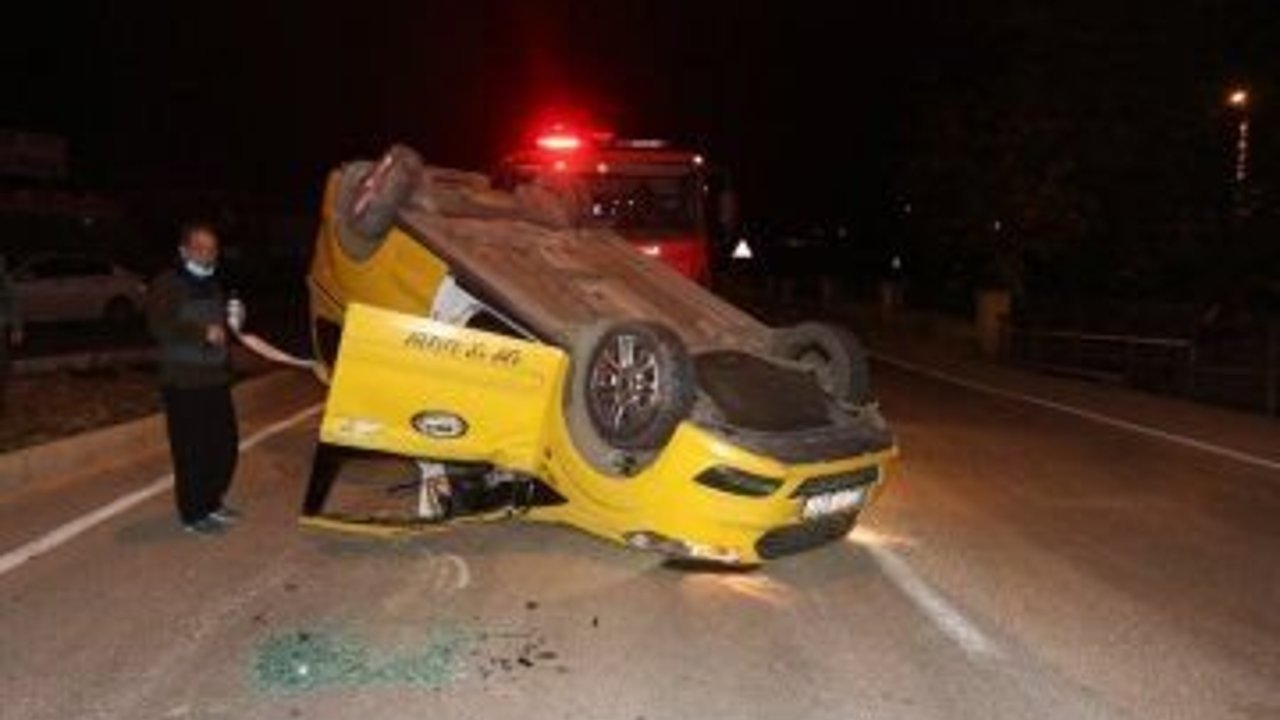 Antalya'da kamyonetle çarpışan taksi takla attı
