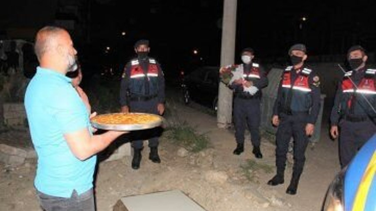 ALANYA'NIN Mahmutlar Mahallesi'nde yaşayan Selahattin Uğurkutu (40), Şehitler Haftası münasebetiyle jandarma ekiplerine moral olması için sürpriz bir kutlama yapmak istedi. Durumu mahalleliye de bildiren Uğurkutu Mahmutlar Jandarma Karakolunu arayıp, Mahmutlar Mahallesi Yangılı Mezarlığının karşında kavga olduğu ihbarında bulundu. İhbar yapılan yere kısa sürede gelen jandarma ekipleri, gördükleri manzara karşısında önce şaşkınlık yaşadı. Alkışlarla ve meşalelerle karşılanan jandarma ekiplerinin yanında olduklarını belirten mahalleli 'Şehitler ölmez vatan bölünmez, Ne mutlu Türküm diyene' sloganları attı. Mahalledeki bir apartmanda evinlerinin balkonlarına çıkan çok sayıda vatandaş ise alkışlayarak kutlamaya destek verdi. Kendileri için hazırlanan sürpriz karşısında şaşıran jandarma, mahalle sakinlerine böyle bir kutlama için teşekkür etti. Ayrıca jandarmaya çiçek takdim kutlamada baklava ikramında da bulunuldu.