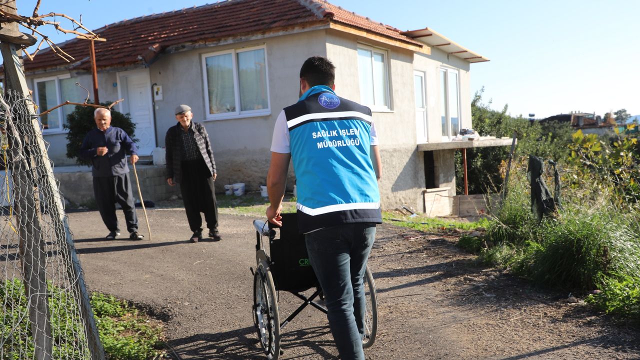 Emine Savun’a tekerlekli sandalyesini Sağlık İşleri Müdürlüğü ekipleriyle birlikte teslim eden Emine Yıldırım ve Belediye Başkan Vekili Mehmet Alptekin vatandaşlara sağlıklı ve uzun ömürler diledi.