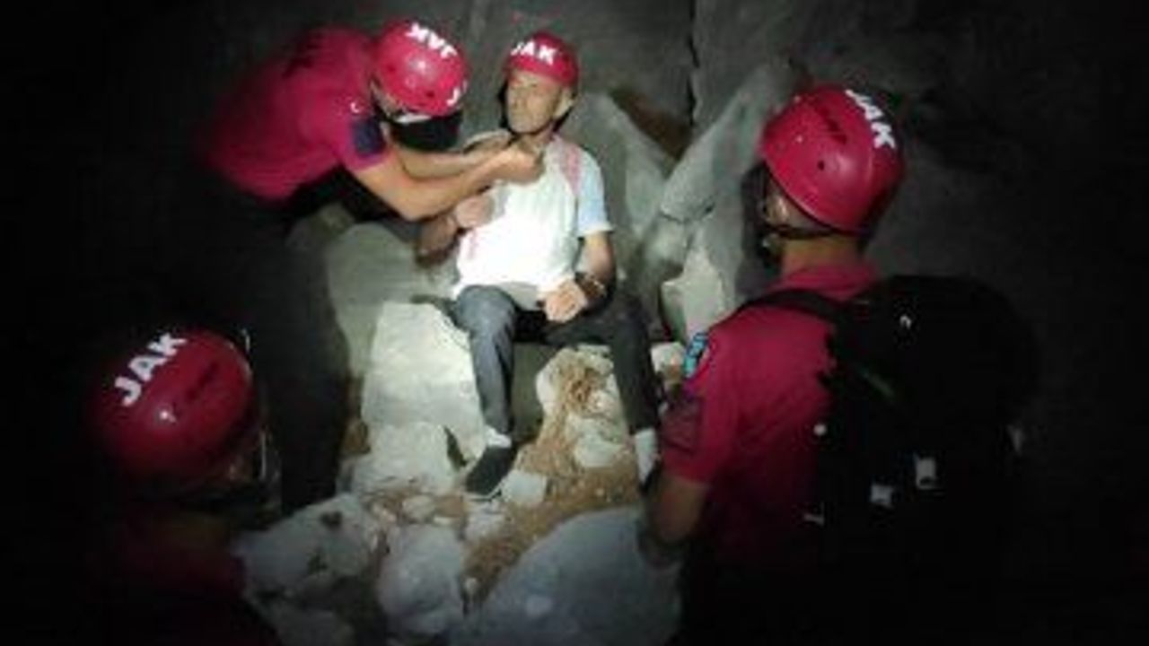 KEMER'E bağlı Beldibi Mahallesi'nden yürüyüşe çıkan Litvanyalı turist A.M.'nin kayıp başvurusunun ardından Kemer Cumhuriyet Başsavcılığı koordinesinde arama çalışmalarına başlandı. Dün saat 21.00 sıralarında Antalya İl Jandarma Komutanlığı'na bağlı 8 kişilik JAK Timi, kayıp turiste sarp ve kayalık alanda ulaştı. Genel sağlık durumunun iyi olduğu gözlenen A.M., bulunduğu alanın sarp ve kayalık olması nedeniyle JAK Timi tarafından teknik malzeme kullanılarak 4 kilometre aşağı indirildi. A.M., daha sonra Beldibi Jandarma Karakolu'na işlemlerin yapılması için götürüldü. (DHA)