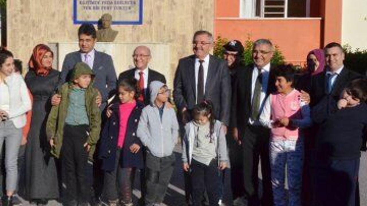 Ziyarette Kaymakam Mehmet Kurdoğlu ve Belediye Başkanı Enver Aputkan, okulun 52 öğrencisine çeşitli hediyeler verdi. (DHA)