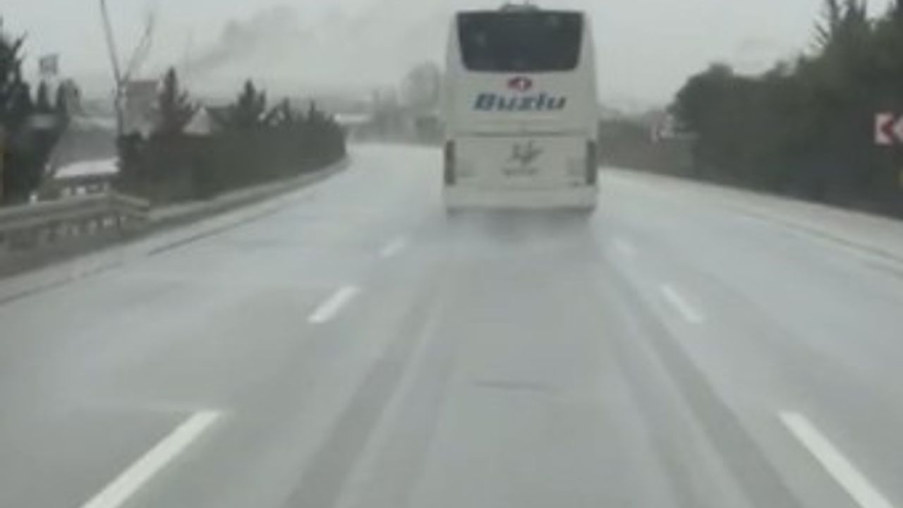 Görüntüyü kaydeden vatandaş, yaşanan duruma tepki göstererek, "110'la gidiyoruz, bu otobüsün arkasında olmamıza rağmen yine de ona yetişemiyoruz. Kuralların dışında gidiyoruz ama gene de yetişemiyoruz" dedi.