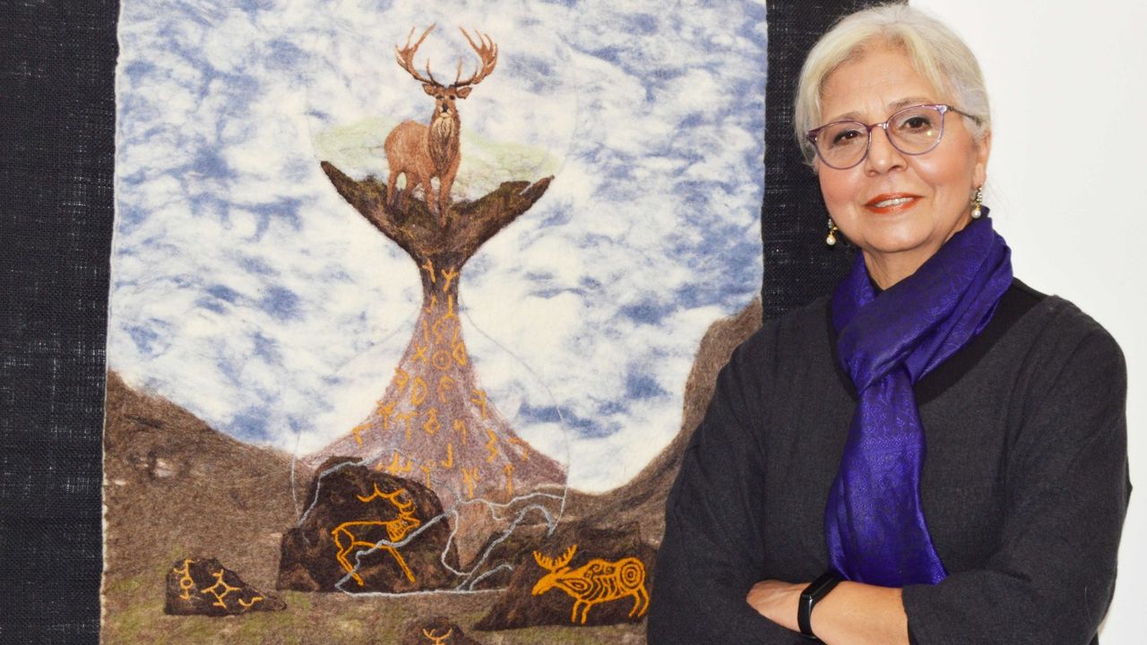 Keçe sanatçısı Nur Sağlamer de keçe atölyesinde yaptığı çalışmaları ve keçenin tarihçesini anlattı. Ön Türk Uygarlığı'na ait kaya resimlerini keçe tuval üzerine yansıtan Sağlamer, sözlerini şöyle sürdürdü;