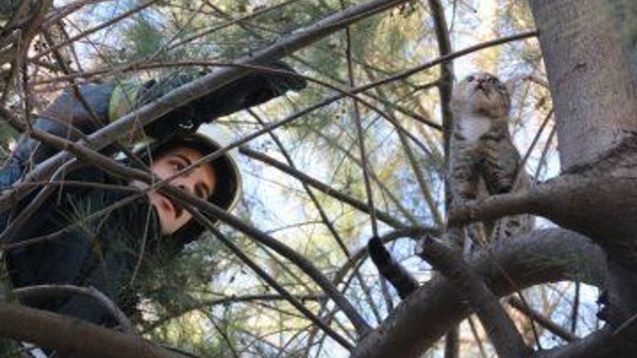 Ekipler kediye itfaiye merdiveni ile ulaşmaya çalışsa da, yaklaşan itfaiye eri karşısında paniğe kapılan kedi daldan dala geçti. Kedi, 30 dakikalık çalışmanın ardından itfaiye erinin kucağına alması ile kurtarıldı. Bu sırada da rahat durmayan kedi, zaman zaman patileri ile itfaiye erine saldırdı. Ekipler tarafından aşağı indirilen kedi, daha sonra geri bırakıldı. (İHA)