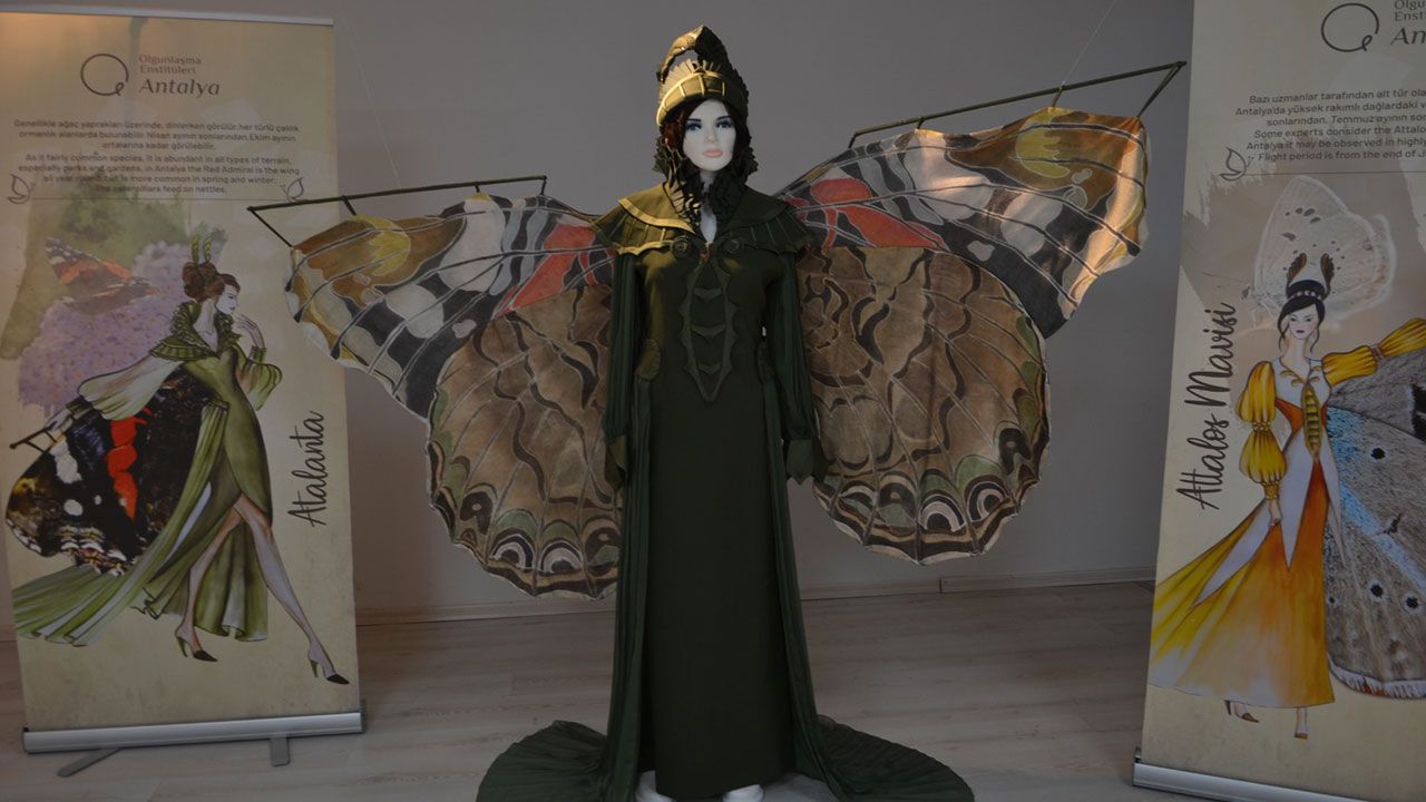 ‘Antalya Kelebekleri Özel Kostüm Sergisi’nde yer alan eserler, Olgunlaşma Enstitüsü’nün farklı bölümlerinin ortak emeğiyle hazırlandı. Giyim, nakış, sanat tasarımı ve boya alanlarında çalışan geniş bir ekibin katkısıyla hazırlanan kostümler, ipek kumaş üzerine işlenmiş kelebek kanat desenleriyle dikkat çekti.
