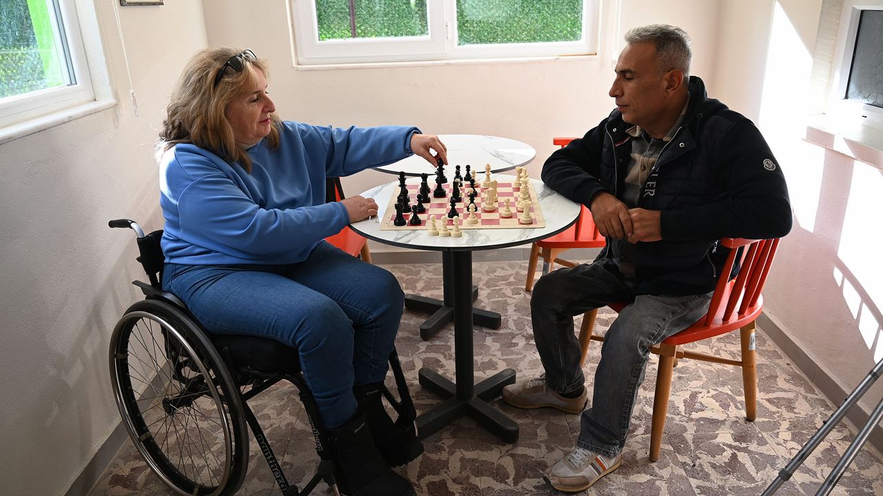 Mola Evi’nde vaktini dolu dolu geçiren engelli bireylerin kimisi satranç oynuyor, kimisi kitap okuyor kimisi de motor becerilerini geliştirici oyunlar oynuyor.