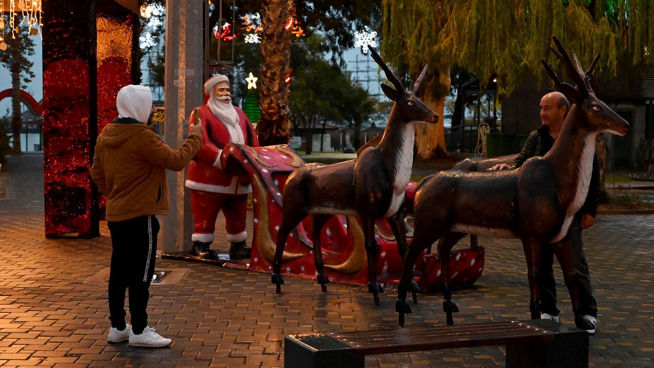 Mustafa Ertuğrul Aker Parkı’nda aydınlatma çalışmalarını tamamlayan belediye ekipleri, parka Noel Baba ve geyiklerden oluşan kızak da yerleştirdi.