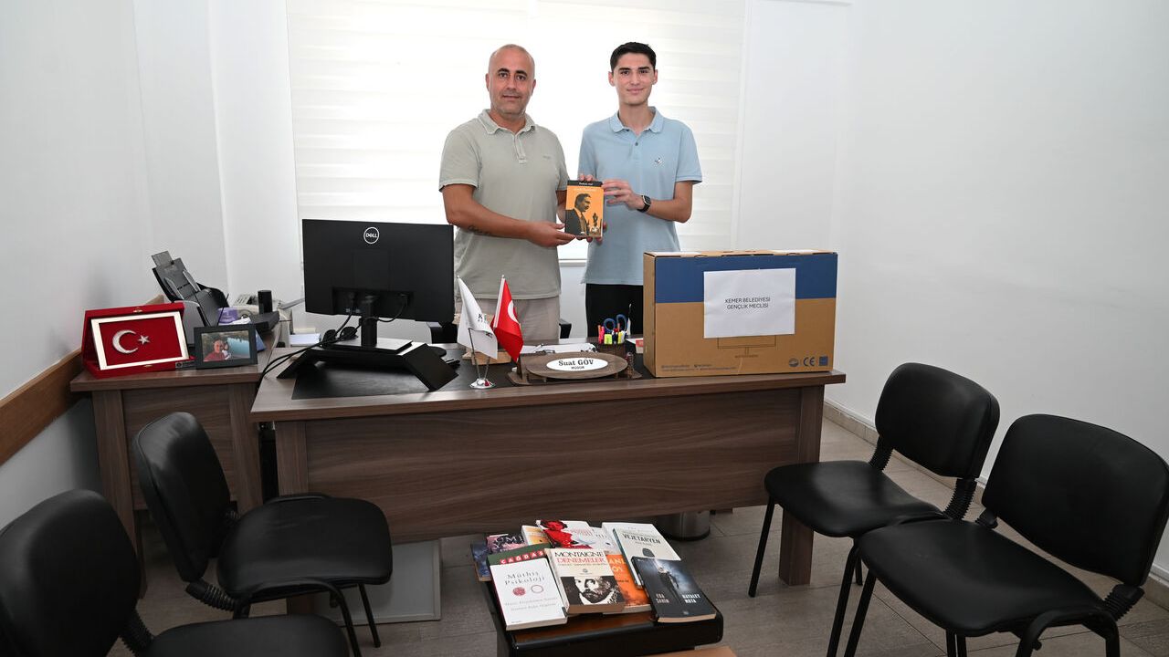 Kemer Belediye Başkanı Necati Topaloğlu öncülüğünde kurulan Gençlik Meclisi Başkanı Erdal, Gençlik Meclisi’nin kuruluş yıl dönümü dolayısıyla Kurs Müdürü Suat Göv’ü ziyaret ederek kitap bağışında bulundu.