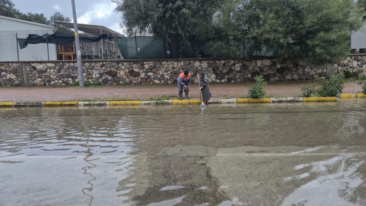 Kemer Belediye ekipleri, sağanak yağmur nedeniyle tıkanan mazgalların ve rögarların temizlik çalışmalarını aralıksız sürdürüyor.