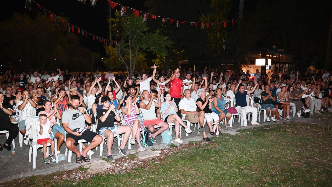 Mustafa Ertuğrul Aker Parkı’nda yer alan Kemer Belediyesi Deniz Kafe yanında kurulan dev ekrandaki A Milli Erkek Basketbol Takımı’nın Almanya ile oynadığı karşılaşmayı, Kemer Belediye Başkan Yardımcısı Semih Top, Kemer Belediyesi Kültür ve Sosyal İşler Müdürü Berkan Bilal, Kemer Belediyesi gençlik Meclisi Başkanı Mehmet Yalın Erdal vatandaşlarla birlikte izledi.