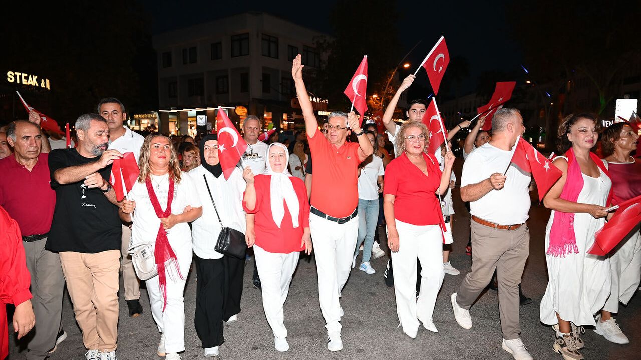 Fener alayı ve bayrak yürüyüşüne katılanlar, Liman Caddesi'nden geçerek Kemer Cumhuriyet Meydanı'na ulaştı. Vatandaşlar, ellerindeki meşaleler ile Türk bayraklarını sallayarak Zafer Bayramı kutlamaları coşkusuna ortak oldu.