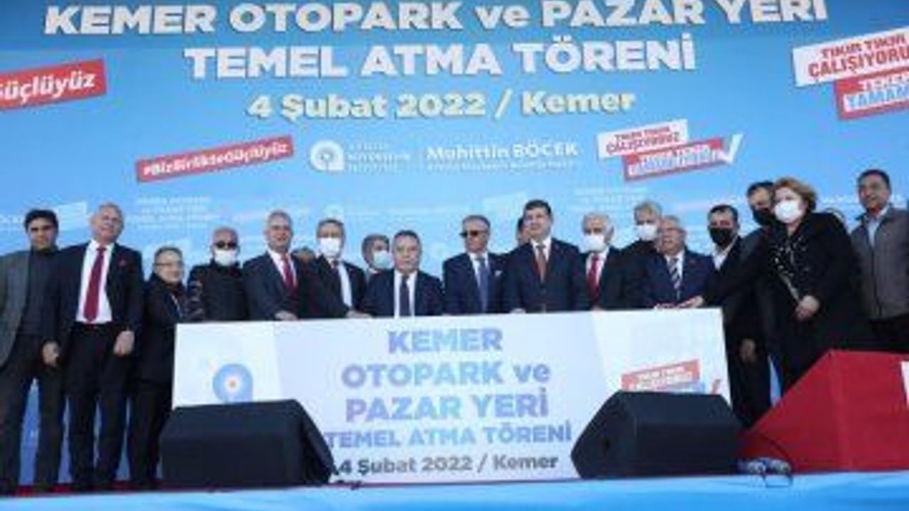 Antalya Büyükşehir Belediyesi Kemer Otopark ve Pazar Yeri Projesi'nin temeli törenle atıldı. Başkan Muhittin Böcek, göreve geldikleri günden bu yana Kemer'e 76 milyon 650 bin lira yatırım yaptıklarını açıkladı