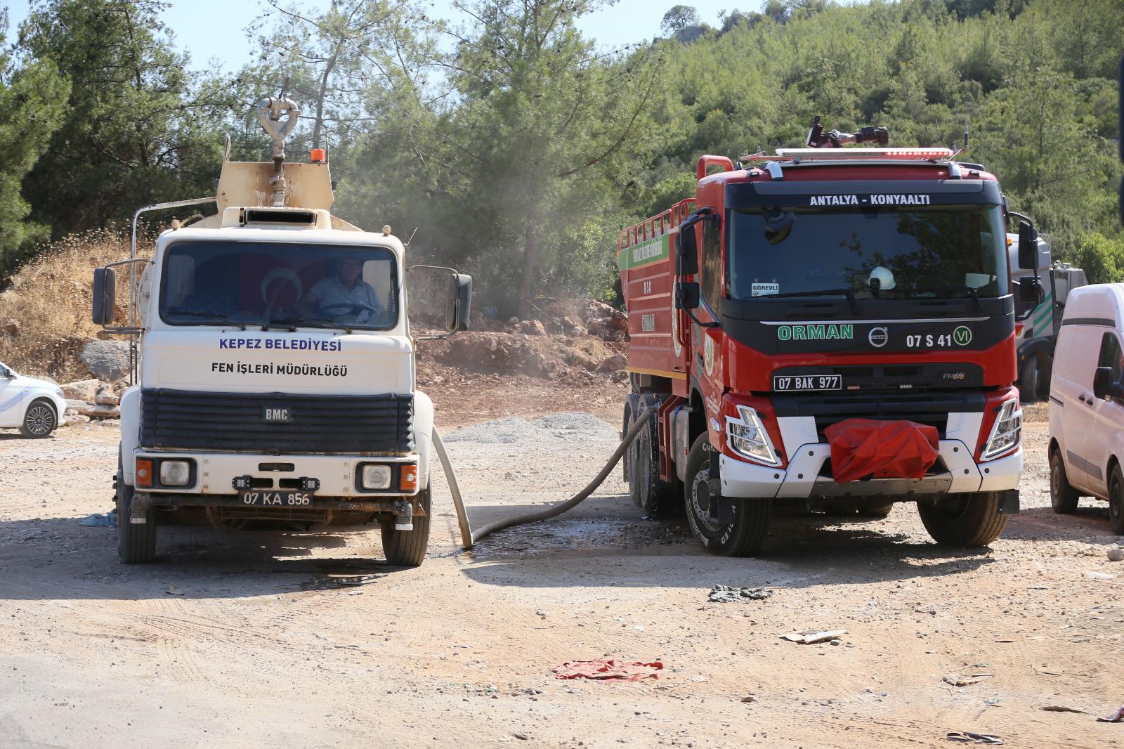 Kepez Belediyesi, Kızıllı Mahallesi’ne yakın ormanlık alanda çıkan yangının söndürme çalışmalarına 5 su arazözü ve 7 personelle destek veriyor