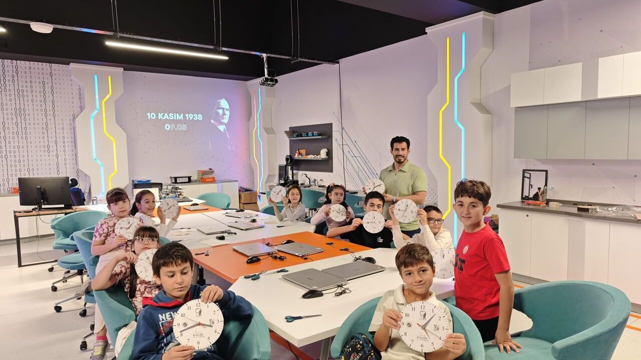 Ulu Önder Mustafa Kemal Atatürk, ebediyete intikalinin 87. Yıl dönümünde Kepez’de sevgi ve minnetle anılıyor. Kepez Belediyesi, 10 Kasım Atatürk’ü Anma Günü etkinlikleri kapsamında Antalya Bilim Merkezi’nde “Atatürk Saati” ve “Atatürk Işığında” konulu atölye çalışmaları düzenledi. Atölye çalışmaları 7-14 yaş grubundaki çocukların katılımıyla ücretsiz olarak üç ayrı seansta yapıldı. Atatürk saati atölyesinde öğrenciler, akrep ve yelkovanın çalışma prensibini öğrenerek kendi saatlerini tasarladılar. Çocuklar, yaptıkları saatleri çok sevdikleri Atatürk’ün fotoğrafıyla taçlandırarak, anlamlı bir anı oluşturdular. Saatler, Ulu Önder’in sonsuza dek kalplerde yaşadığı 09.05’i gösterdi.