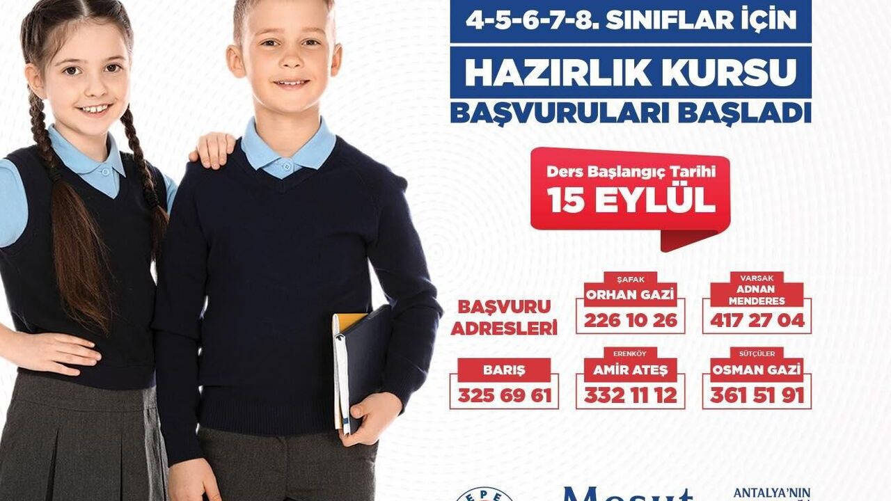Kepez Belediyesi’nin, gençlere üniversite kapılarını aralayan YKS Hazırlık Kursu ile 4, 5, 6, 7 ve 8. sınıf ilköğretim öğrencilerine yönelik Destek Eğitim Kursları da 15 Eylül’de başlıyor