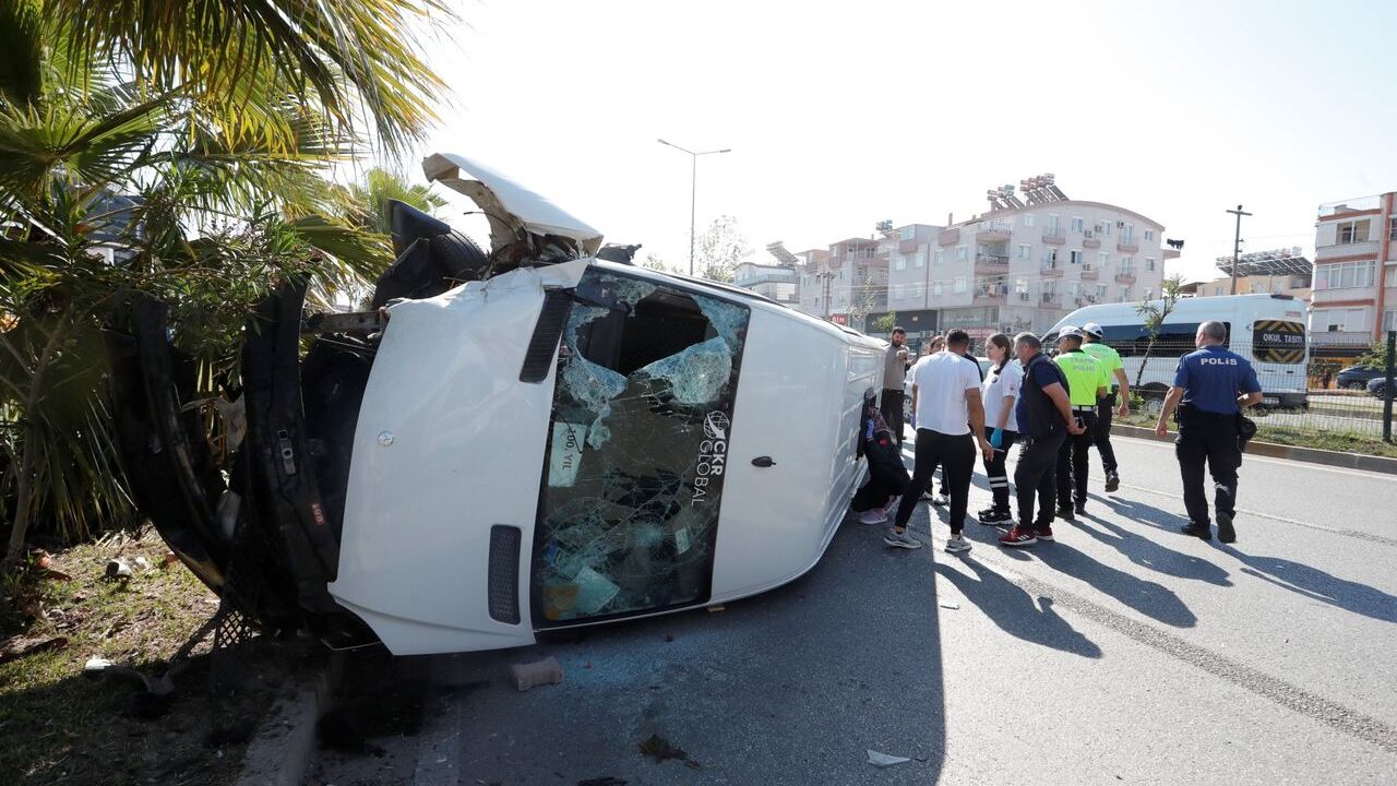 Kaza, saat 09.30 sıralarında Kepez ilçesi Emek Mahallesi Gazi Bulvarı üzerinde meydana geldi. Edinilen bilgiye göre, Havalimanı’ndan şehir merkezi istikametine seyir halindeki Gökhan A.’nın kullandığı 07 C 2460 plakalı servis minibüsü sürücüsünün direksiyon hakimiyetini kaybetmesi sonucu önce yol kenarındaki refüje, ardından da palmiyelere çarparak devrildi. Kazayı gören diğer sürücülerin 112 Acil Çağrı Merkezi’ne ihbarı ile olay yerine itfaiye ve sağlık ekipleri sevk edildi.