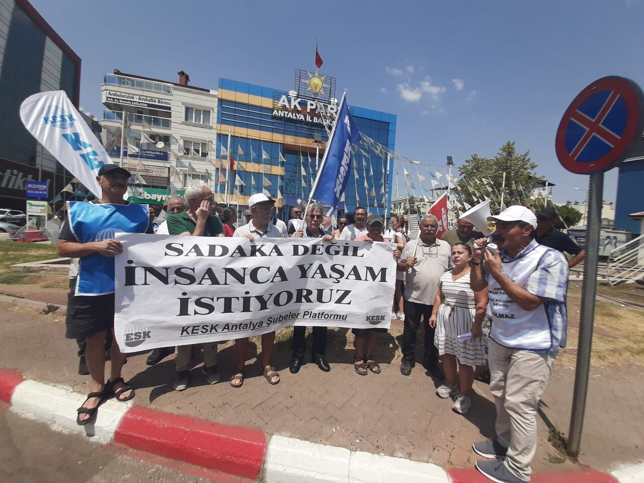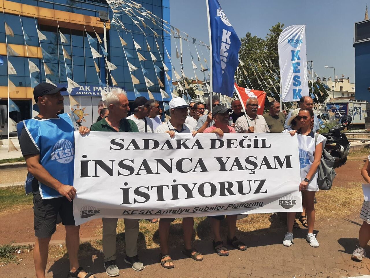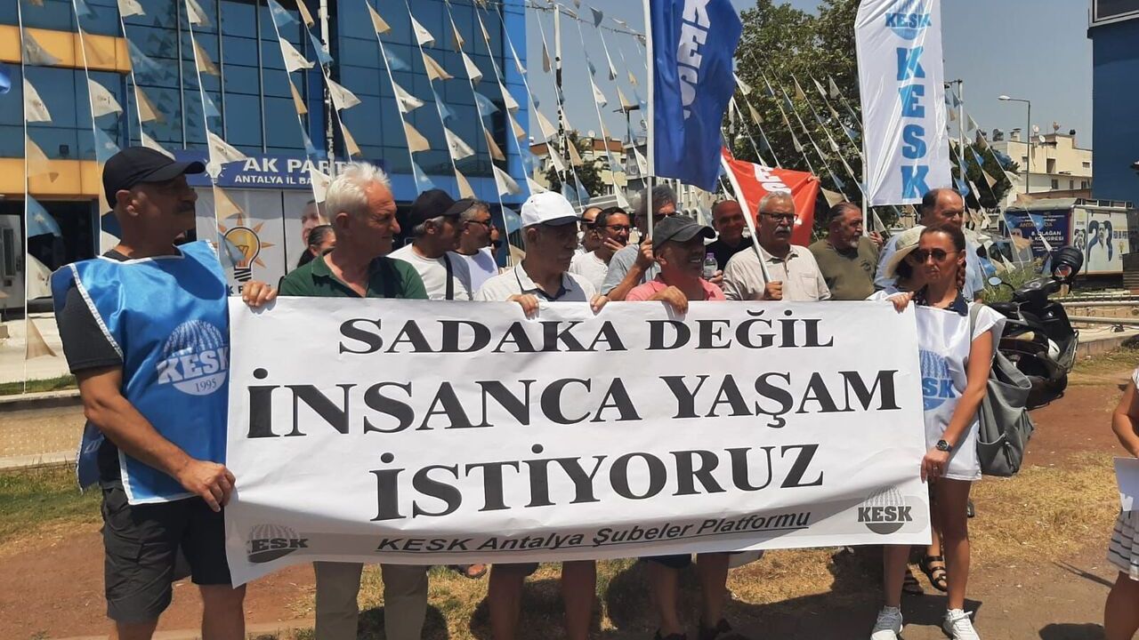 Karakurt’un ardından konuşan Kamu Emekçileri Sendikaları Konfederasyonu (KESK) Antalya Şubeler Platformu Dönem Sözcüsü Devrim Mol ise “İktidar, 4 milyon kamu emekçisine ve 2,5 milyon emekliye, aileleriyle birlikte 25 milyonluk devasa bir kitleye bir artış değil; sefalet, yoksulluk ve güvencesizlik teklif etmiştir. Belli ki yine ‘ölümü gösterip sıtmaya razı etme’ politikası izleniyor. Bu masadan bizlerin lehine bir şey çıkmayacağını öngörmek için kâhin olmaya gerek yok. Sadece son iki dönemde yaşananlar bile neyle karşılaşacağımızı açıkça gösteriyor” dedi.