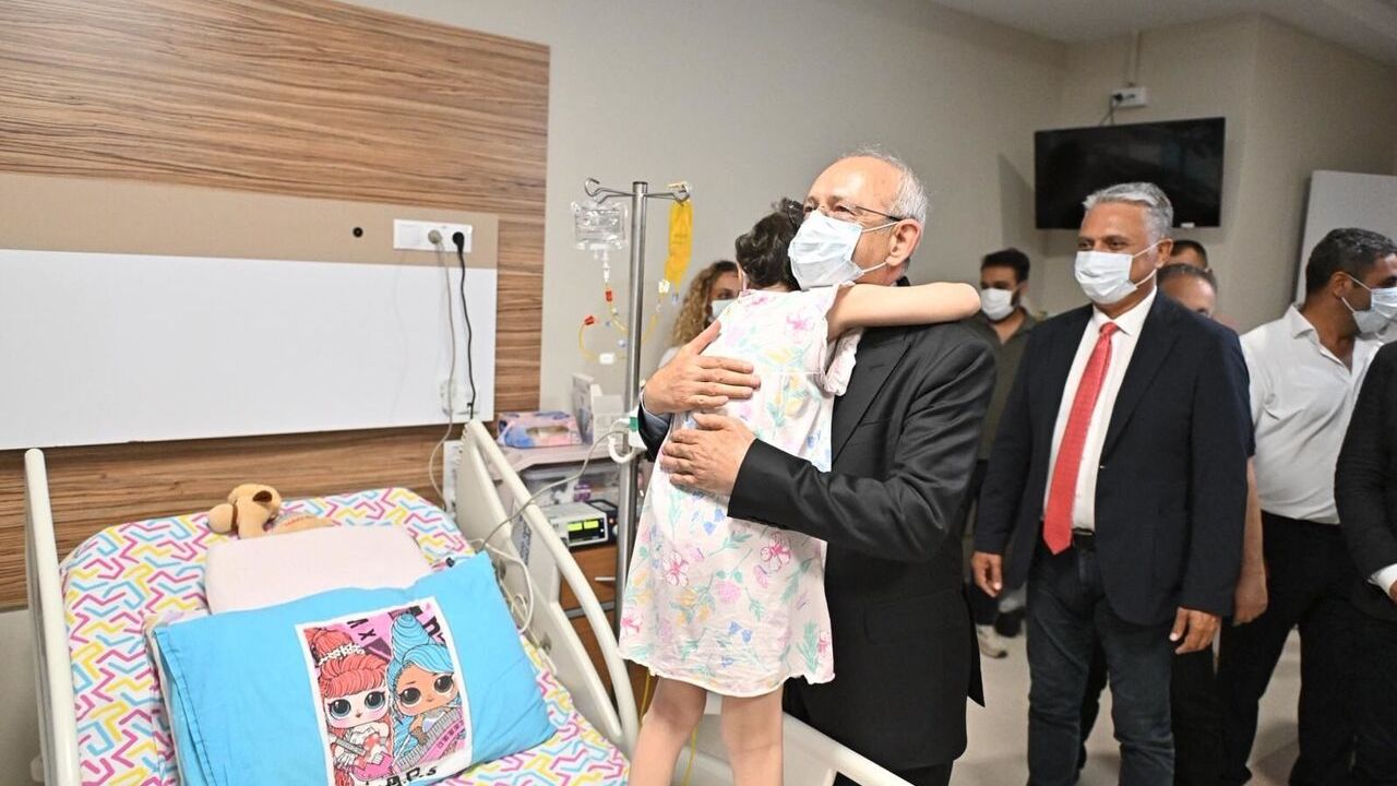 CHP eski Genel Başkanı Kemal Kılıçdaroğlu, Antalya'da Muratpaşa Belediye Meclis Üyesi Ufuk Çiftçi'nin lösemi hastası 5 yaşındaki kızı Aylin Çiftçi'yi, tedavi gördüğü Akdeniz Üniversitesi Hastanesi'nde ziyaret etti. CHP Bursa Milletvekili Orhan Sarıbal, Muratpaşa Belediye Başkanı Ümit Uysal, eski belediye başkanları Semih Esen ve Turgay Genç ile bazı partililerin eşlik ettiği Kemal Kılıçdaroğlu'nu hastane ziyaretinde, Başhekim Prof. Dr. Yıldıray Çete karşıladı.