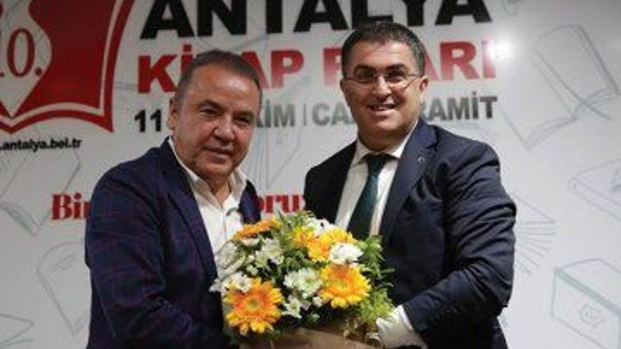 Başkan Böcek, söyleşi sonunda Ersan Şen'i tebrik ederek çiçek verdi. Vatandaşların yoğun ilgi gösterdiği Prof. Dr. Ersan Şen okurlarının kitaplarını imzaladı ve fotoğraf çektirdi. (DHA)