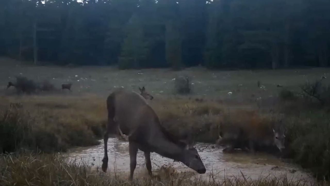 DKMP tarafından yaban hayatının takibi için yurdun çeşitli bölgelerine yerleştirilen fotokapanlara, farklı türlerden hayvanların görüntüleri yansıyor. DKMP'nin sosyal medya hesabından son paylaşılan görüntülerde, kızıl geyiklerin su birikintisi üzerine yansıyan görüntüleri yer aldı.