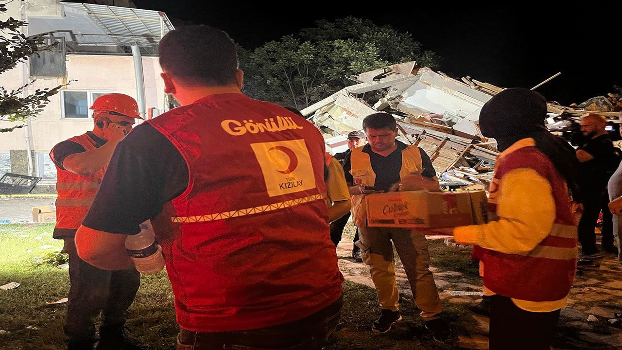 Kızılay; 30 araç, uzman ekipleri ve gönüllüleriyle hem depremden etkilenen vatandaşlara hem de gece boyunca görev yapacak arama-kurtarma ve sağlık ekiplerine sıcak yemek, içecek ve temel gıda ikramı yaptı.