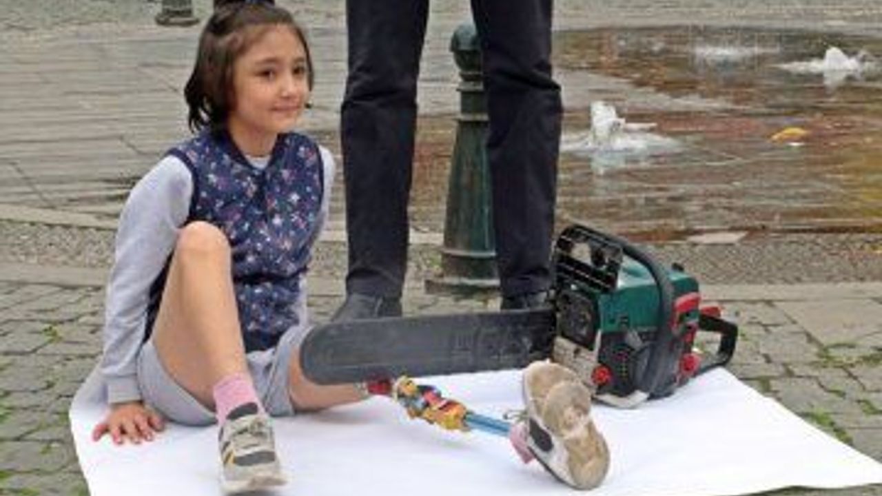 8 yıldır hukuk savaşı verdiğini belirten Baba Ali İhsan Yıldırım, bugün Muratpaşa ilçesi Attalos Heykeli önünde ilginç bir eyleme imza attı. Heykelin önündeki alana gelen Yıldırım, yanında getirdiği kızının protez bacağının üzerine motorlu testereyi koydu. İhmal iddiası ve 8 yıldır verdiği hukuk mücadelesine dikkat çekmek için böyle bir eylem yaptığını belirten Yıldırım, 'Çocuğumuzu sakat bıraktılar. 8 yıldır hak hukuk arıyoruz. Sonuç istiyoruz. Anayasa mahkemesine başvurdum, oradan iç hukuk yollarının tükenmediğini söylediler. Zaten 8 yıldır uğraşıyorum, adalet arıyorum' dedi.