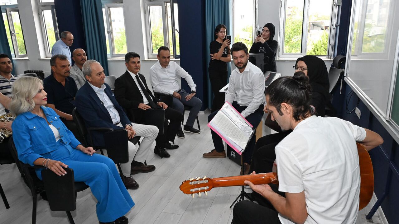 Kepez Belediyesi, Habibler Mahallesi’nde bulunan Şehit Celal Özcan Anadolu Lisesi’ne müzik sınıfı kazandırdı. Okul yönetiminin talebi üzerine hayata geçirilen proje kapsamında, mevcut 48 metrekarelik sınıf tadilatla baştan sona yenilendi. Zeminden boyaya, perdeden mobilyalara kadar her ayrıntının düşünüldüğü sınıf, öğrencilerin müzik eğitimine uygun şekilde donatıldı. Müzik sınıfında öğrencilere daha konforlu bir ortam sunulması için ses yalıtımlı bir alan oluşturularak bateri için özel bir bölüm hazırlandı. Ayrıca, öğretmen masası ve öğrenci sandalyeleri de yenilenerek, öğrencilere donanımlı bir müzik sınıfı oluşturuldu.
