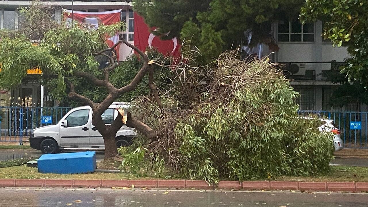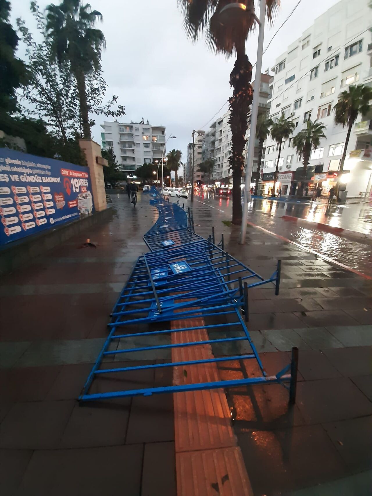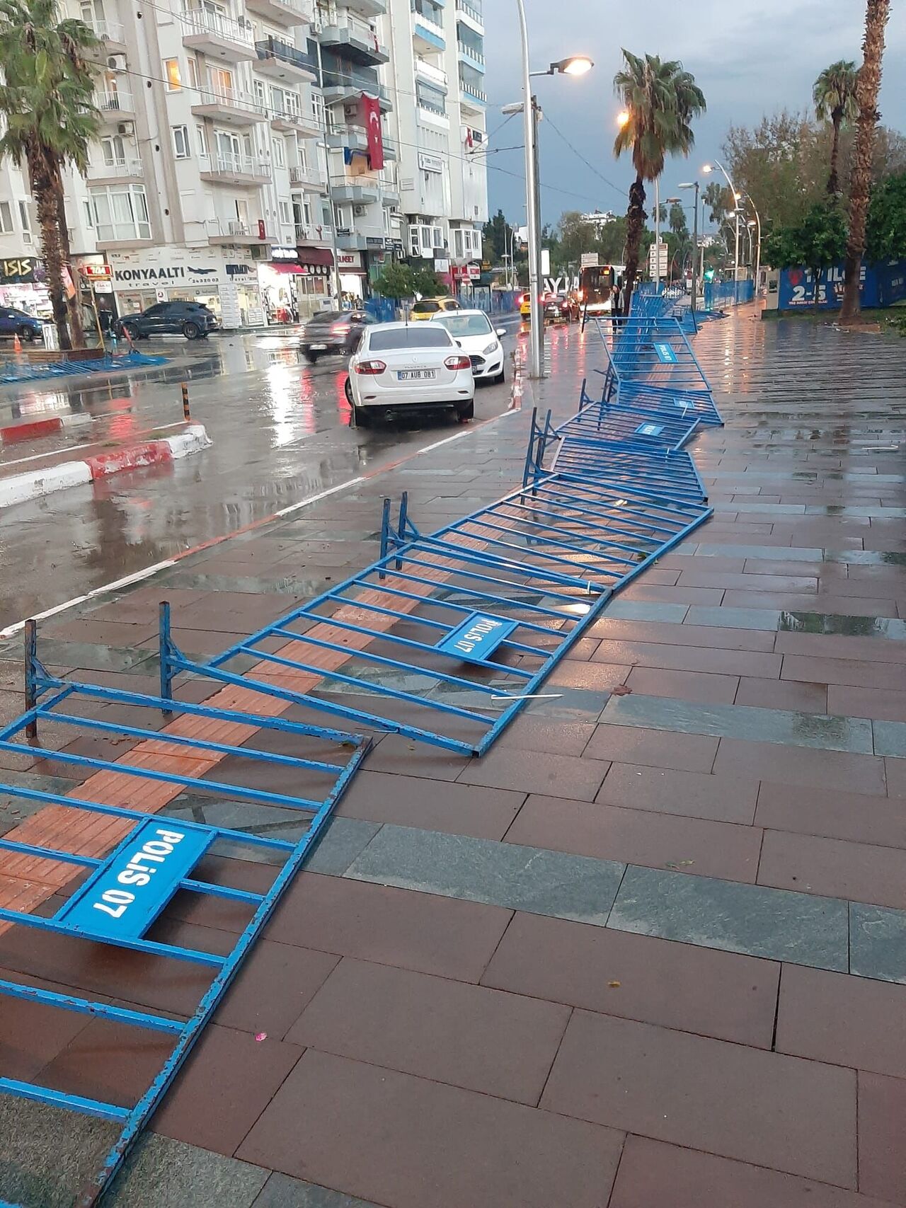 Antalya’da gün boyu kapalı olan hava, akşam saatlerinde yerini fırtına ve yağmura bıraktı. “Süper hücre” diye tabir edilen doğa olayı nedeniyle şehir birkaç dakika içinde fırtına ve yağmura teslim oldu. Görüş mesafesinin yağmur sebebiyle yer yer 100 metrenin altına düştüğü Muratpaşa ilçesinde bulunan Konyaaltı Caddesi’nde, şiddetli fırtına bir ağacı devirdi. Devrilen ağaç sonrası yol, tek taraflı olarak ulaşıma kapandı. Ekipler kapanan yolu açmak için çalışmalara başladı. Yine aynı caddede bulunan ve 29 Ekim kutlamaları için polisin koyduğu demir korkuluklar devrildi.