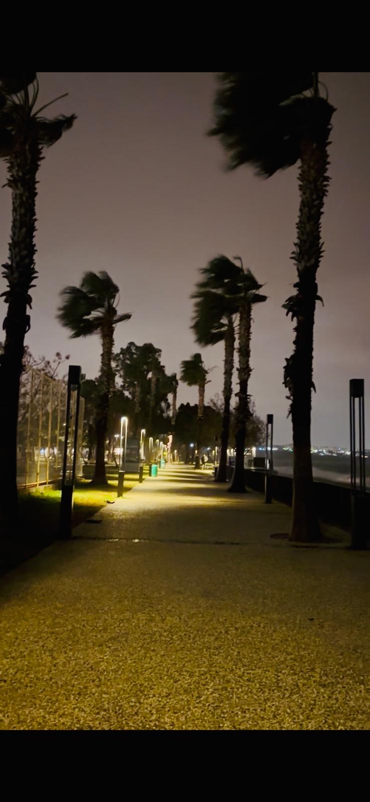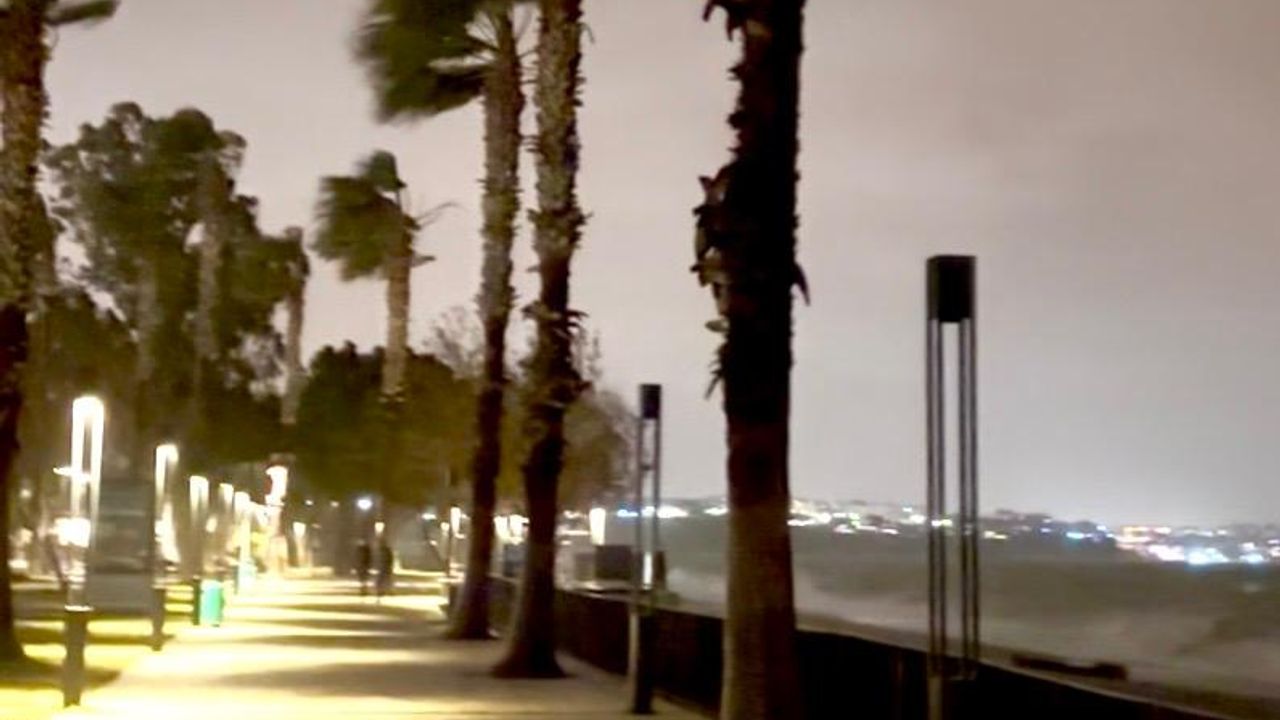 Dün gece Antalya, son 10 gündür yaşanan fırtınalardan birini daha atlattı. Meteorolojinin sarı kodla uyardığı kentte, şiddetli rüzgâr gece boyunca kendini gösterdi. Her gün binlerce kişinin uğrak yeri olan dünyaca ünlü Konyaaltı Sahili de fırtınalı havada adeta terk edilmiş bir yer hüviyetine büründü. Dev dalgaların sahili dövdüğü gecede ortaya, bakanları ürküten görüntüler çıktı.