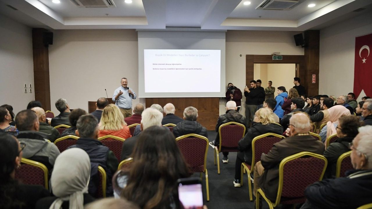 İnsanl yapay zekayı cep telefonları, ulaşım, bilim ve hayatın her alanında kullandığını ifade eden Konyaaltı Belediye Başkanı Cem Kotan, “Yapay zekayı, en basit anlamıyla tüm analiz ve verileri toplayan tabiri caizse insanlık adına karar verme yetisine sahip bir bilgisayar sistemi noktasında düşünebiliriz. Ama tabii doğru verilere erişiliyor mu? Doğru verilerle bize doğru kararları verdiriyor mu? Bu bir tartışma konusu. Teknoloji geliştikçe ve gündemler değiştikçe yapay zekanın da gerçekten dünyada önemi artıyor. Ama bu noktada sorunlar da artıyor. Biz de Konyaaltı Belediyesi olarak bu konuya dikkat çekmek için kıymetli hocamız Prof. Dr. Özgür Martin’i davet ettik. Konyaaltı Belediyesi’ni bilim ve kültürle buluşturan bu kadroya destek verdiği için hocamıza teşekkür ediyorum. Ayrıca tüm vatandaşlarımıza salonumuzu doldurduğu için teşekkürlerimi iletiyorum” diye konuştu.