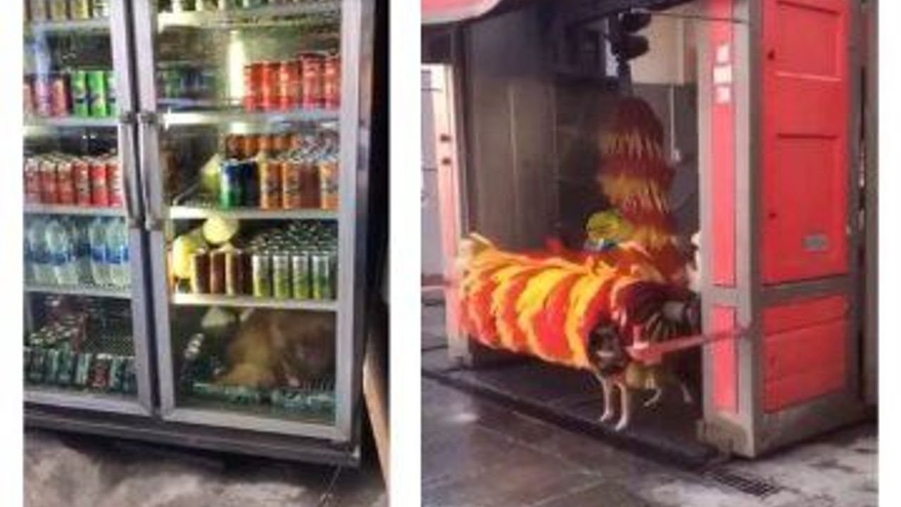 Hava sıcaklığının 30 derece, nem oranının ise yüzde 60 ölçüldüğü turizm kenti Antalya'da yaşayanlar ve turistler, denizde ve havuzlarda serinliyor. Sıcak hava insanları olduğu kadar hayvanları da bunaltıyor. Aşırı sıcaklardan etkilenen köpeğin, bir akaryakıt istasyonundaki otomatik otomobil yıkama fırçasında yıkanması renkli görüntüler oluşturdu. Kent merkezindeki marketin önünden geçen Rus turiste ait olduğu öğrenilen Pomeranian boo cinsi köpek ise içecek dolabının kapısını başıyla açıp içine girdi. Dolabın alt kısmındaki boşluğa uzanarak yatan köpek, sahibi tarafından cep telefonuyla görüntülendi. Sosyal medyada paylaşılan görüntüler kısa sürede çok sayıda beğeni aldı.