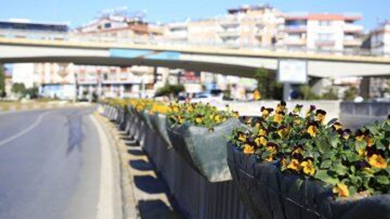 Büyükşehir Belediyesi, köprülü kavşakları binlerce çiçekle süsledi. Park ve Bahçeler Dairesi Başkanlığı'nın kendi serasında üretilen 10 bin menekşe saksılara dikilerek köprülü kavşak trabzanlarına asıldı