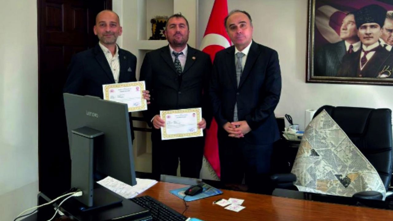 ANTALYA'da Korkuteli Kaymakamı Sezgin Üçüncü, Korkuteli Tapu Müdürü Mustafa Yağcı ile müdür yardımcıları Muzaffer Mete Yalçın ve Yiğit Tarık Kocatürk'e başarı belgesi verdi.