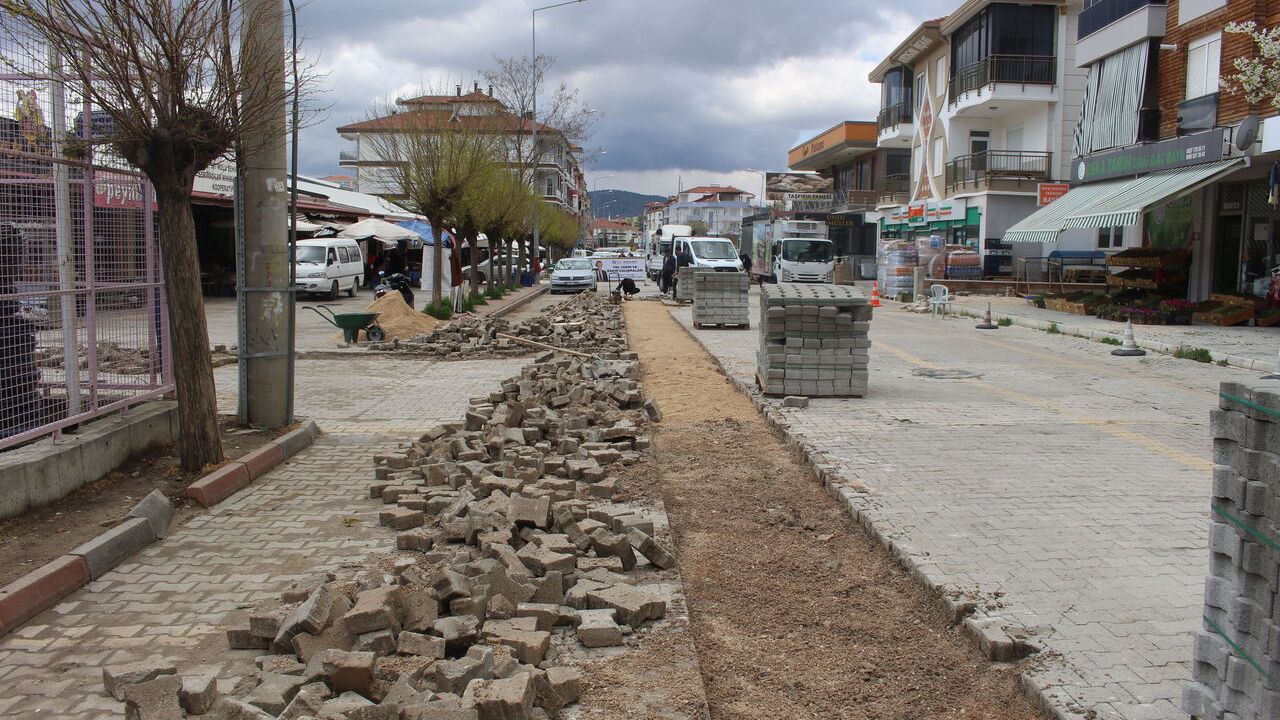 KORKUTELİ ilçesinde Antalya Büyükşehir Belediyesi’nin sorumluluğunda olan caddelerde parke onarım çalışması yapılıyor.
