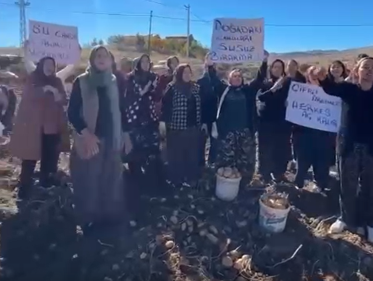 Tarlada yetiştirilen patateslerin içinde açıklama yapan çiftçi kadınlar, “Şu ellerimize baksınlar, bizim sularımızı almasınlar, burada dönümlerce tarlalarımız meyve bahçelerimiz var. Su olmazsa olmaz, su olmazsa hayat olmaz. Biz mücadelemizde haklıyız” sözlerini haykırdı.