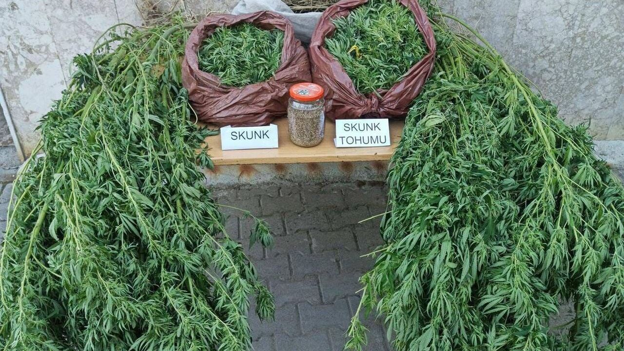 Antalya İl Jandarma Komutanlığı ekipleri, Antalya Cumhuriyet Başsavcılığı'nın talimatları doğrultusunda uyuşturucuyla mücadele kapsamında Korkuteli ilçesinde operasyon gerçekleştirdi. İl Jandarma Komutanlığı Narkotik Şube Müdürlüğü ve Korkuteli İlçe Jandarma Komutanlığı ekiplerinin müşterek çalışmasıyla bir şüpheliye ait ev ve bahçede yapılan aramalarda 11 kilo 500 gram skunk uyuşturucu maddesi, 115 kök skunk bitkisi ve 650 gram skunk tohumu ele geçirildi. Gözaltına alınan şüpheli hakkında adli tahkikatın başlatıldığı bildirildi.