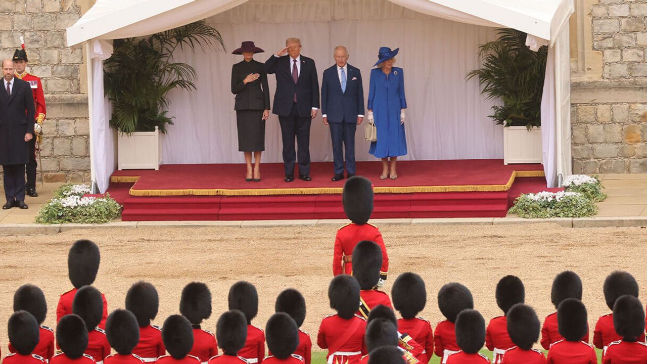 ABD Başkanı Donald Trump, göreve geldikten sonra gerçekleştirdiği 2. İngiltere temaslarına başladı. Trump, İngiltere Kralı 3. Charles ile görüşeceği Windsor Kalesi'ne helikopter ile geldi. First Lady Melania Trump ile birlikte Marine One helikopterinden inen Trump'ı, Galler Prensi William ve eşi Galler Prensesi Kate Middleton karşıladı. Prens ve prensesle ayaküstü sohbet eden ABD Başkanı Trump ve Firs Lady kısa bir yürüyüşün ardından İngiltere Kralı 3. Charles ve Kraliçe Camilla ile selamlaştı. Karşılama töreninin ardından Kraliyet üyeleri ve Trump çifti fayton konvoyuyla Windsor Kalesi'nin avlusuna geçti. Burada düzenlenen görkemli resmi törende Grenadier Muhafızları, Coldstream Muhafızları ve İskoç Muhafızları toplu bandosu tarafından ABD ve İngiliz milli marşları çalındı. İngiltere Kralı 3. Charles, Kraliçe Camilla, Galler Prensi William, Galler Prensesi Kate Middleton ve Trump çifti avludaki resmi tören tamamlandıktan sonra, öğle yemeğine geçti.