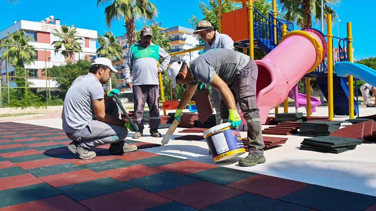 Park ve Bahçeler Müdürlüğü ekipleri tarafından yürütülen çalışmalarla, çocuk oyun gruplarının bulunduğu alanlarda zeminler kauçuk malzeme ile kaplanıyor. Bu sayede çocukların oyun sırasında yaşayabileceği düşme ve yaralanma riskleri en aza indirilirken, oyun alanları daha modern ve estetik bir görünüme kavuşuyor.