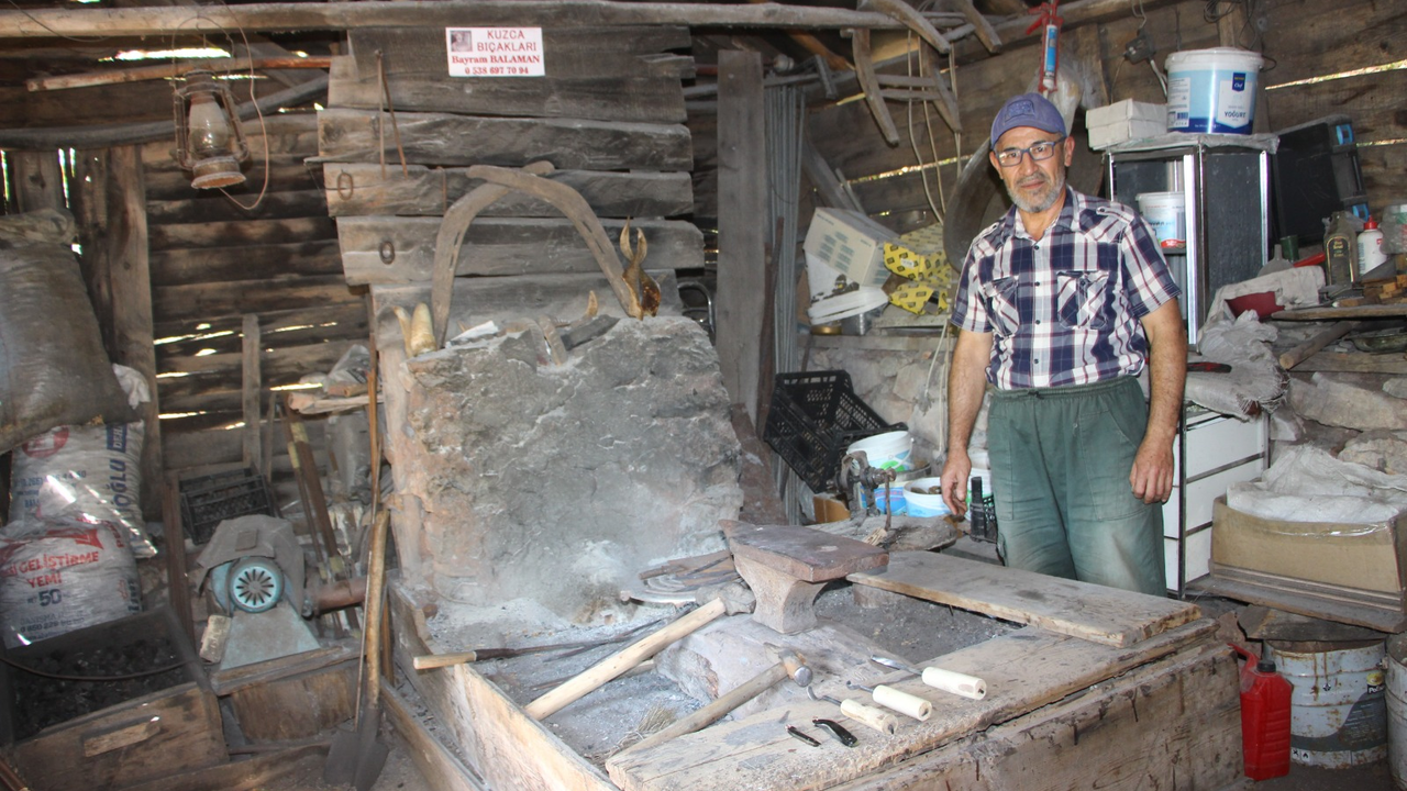 Kuzca bıçağı ustası Bayram Balaman, mesleğin babasından kendisine geçtiğini belirterek, "Babamdan kaldı, 11 yaşımda öğrendim. Bir bıçak yaklaşık 4 saat sürüyor. Özellikle yerli esmer çelik kullanıyoruz, dövme çelik. Saplarını kasaplardan temin ettiğimiz koç ve teke boynuzlarından yapıyoruz. İyi bakıldığı zaman 40-45 yıl ömrü var. Orijinal şekliyle yapan bir tek ben varım. Hazır malzeme kullanarak yapanlar var ama ben direniyorum. Mesleğin özünü, töresini koruyorum. Tamamen el işçiliği, ateşten çıkan dövme bıçak. Günlük 3 büyük, 6 küçük üretebiliyorum. Orijinalde ısrar ediyorum çünkü meslek ölürse en çok ben üzülürüm. Gönüllüsü olsa hemen öğretirim. Aslında kazandırıyor ama gençler bu sabra katlanmak istemiyor" dedi.