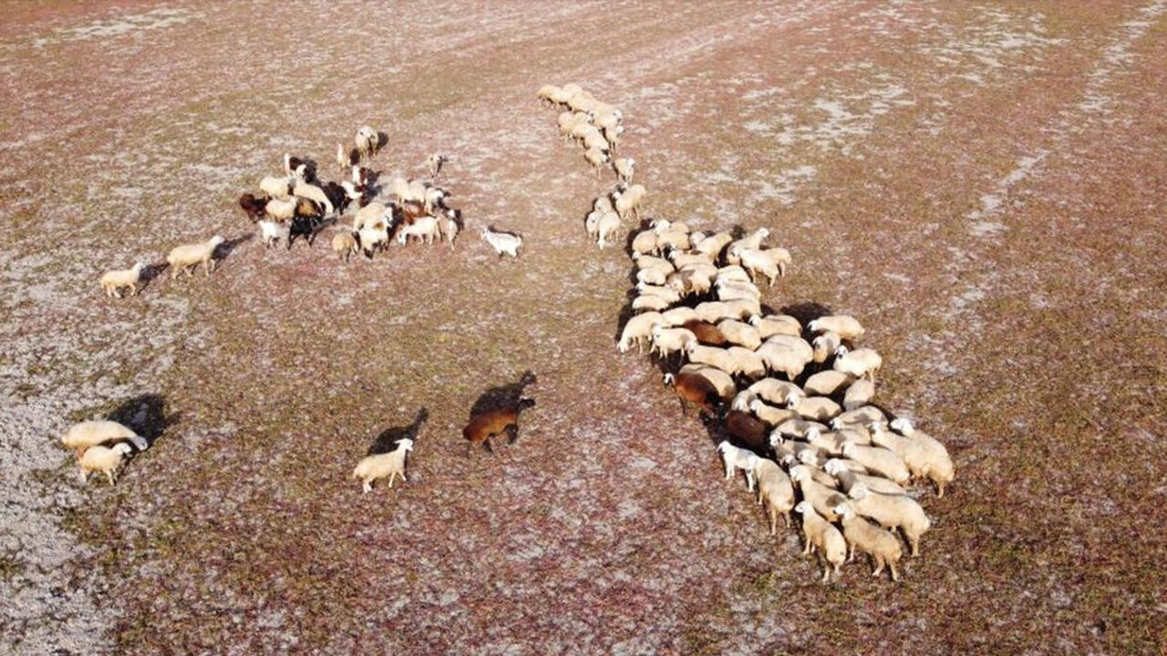 Dron kamerasıyla kaydedilen görüntülerde, Gelingüllü Barajı’nın büyük oranda kuruduğu ve ortaya çıkan geniş alanlarda koyun sürülerinin otlatıldığı görüldü. Kuraklığın şiddetini gözler önüne seren görüntülerde, baraj havzasındaki çatlamış toprak ve hayvanların yayıldığı alan dikkat çekti.
