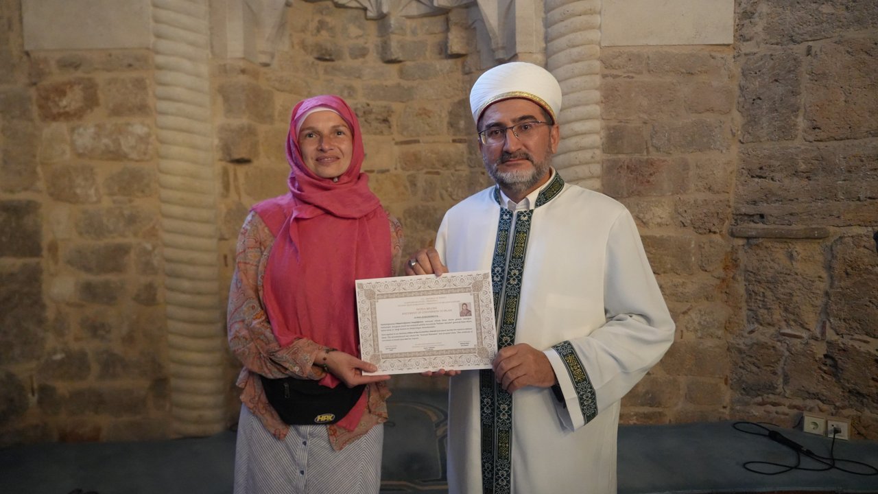 Antalya İl Müftülüğü'ne başvuran Ukrayna uyruklu Lena Komanenkova, Müslüman olarak Meryem ismini aldı
