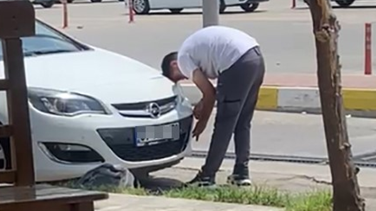 İddiaya göre, Adana otogarında uyuşturucu etkisinde olduğu ileri sürülen bir şahıs kriz geçirdi. Şahıs bir otomobilin kaputuna yaslanıp değişik hareketler yaptı.