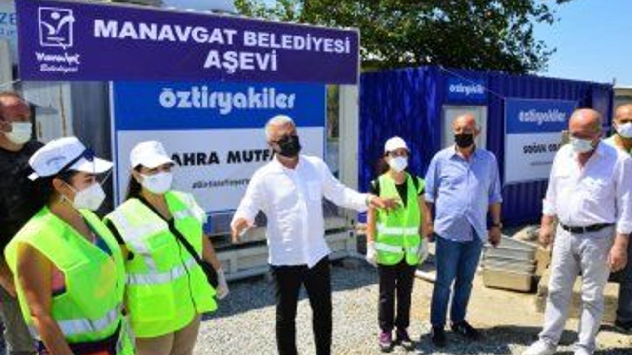 Manavgat Belediye Başkanı Şükrü Sözen, yangının önemli ölçüde etkili olduğu mahallelerden Belenobası'nda 4 mahallenin faydalanacağı bir sahra mutfağı aşevi kurulmasını sağladı