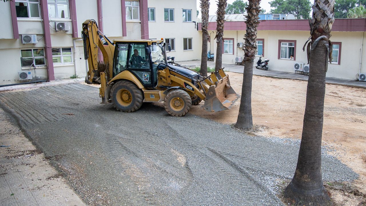 Otopark kapasitesinin artırılması amacıyla başlatılan çalışmalara belediye ekipleri iş makineleri ve teknik personelle katkı sağlıyor. Fen İşleri Müdürlüğü’ne bağlı ekipler hastane yerleşkesinde zemin tesviyesi, dolgu malzemesi serimi ve düzenleme çalışmaları gerçekleştiriyor.