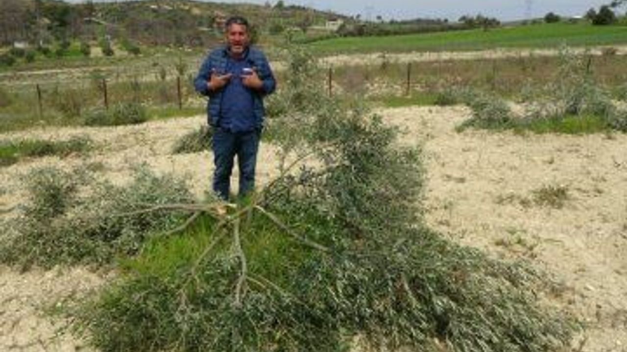 Tarla boş kalmasın, rahmetli kayınpederimin gönlü olsun istedik. Bir bölümünü 15, bir bölümünü 8 kalanını da 5 yıl önce diktik. Dana önce de aynı şekilde bir saldırı oldu. Aslında kimin yaptığını bilmeme rağmen ispatım olmadığı için bir şey diyemiyorum. Ama jandarmaya bu şahıslar hakkında şikayette bulundum' dedi. Ağaçlarını kesenlere seslenen Hasan Koyuncu 'Bu zeytinlerden ne istediniz. Eğer gücünüz yetiyorsa benim karşıma çıkar benimle uğraşırsınız. Allah'ınızdan bulun' sözlerine yer verdi. İHA