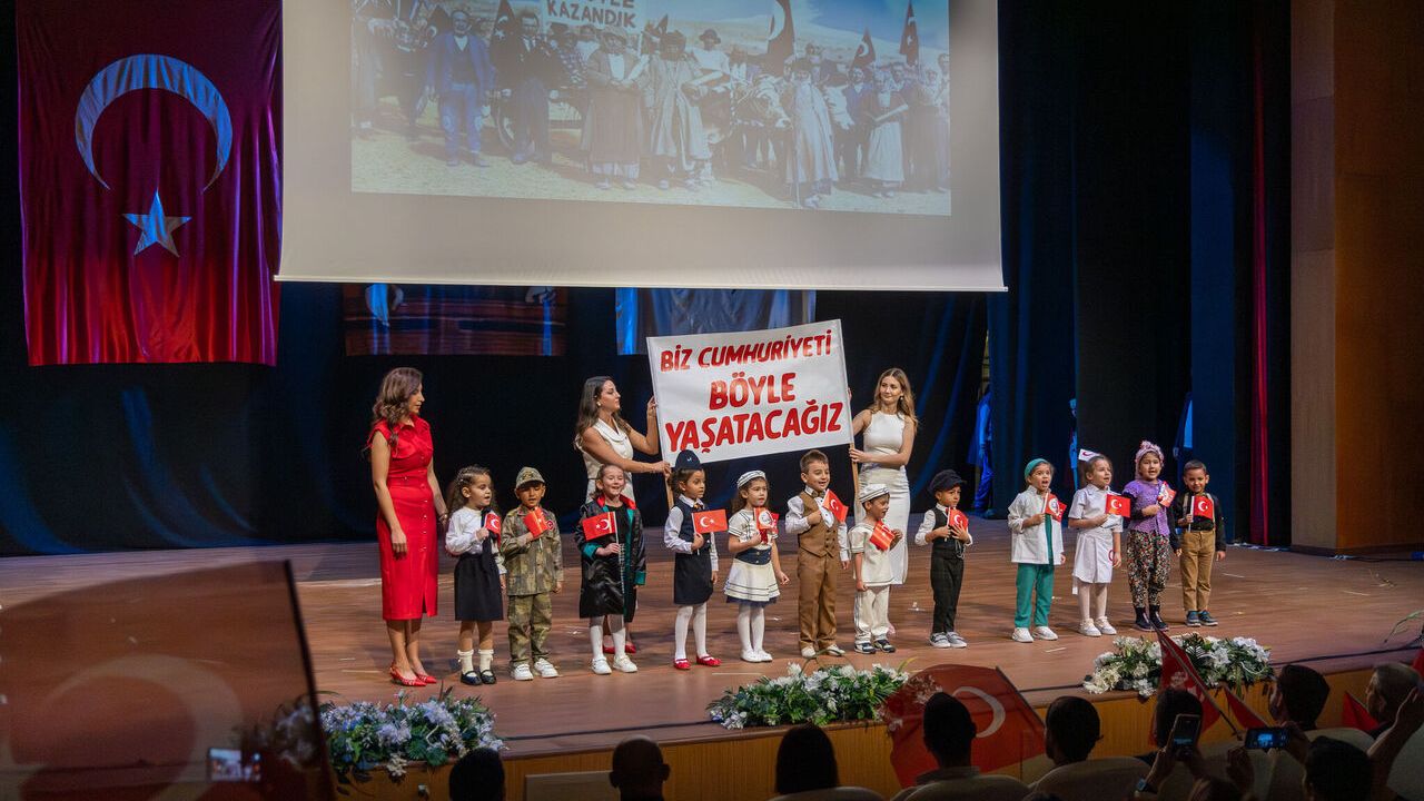 Manavgat Belediyesi Eğitim Kurumları bünyesindeki Side, Çolaklı, Sarılar, Türkan Sözen, Taşağıl Kreş ve Gündüz Bakımevleri ile Ilıca Meliha Ercan Engelsiz Yaşam Merkezi, Manavgat Belediyesi Çocuk Korosu ve Çocuk Kültür Merkezi öğrencileri, Cumhuriyet Bayramı’nın 102. yılı dolayısıyla Atatürk Kültür Merkezi’nde düzenlenen etkinlikte bir araya geldi.