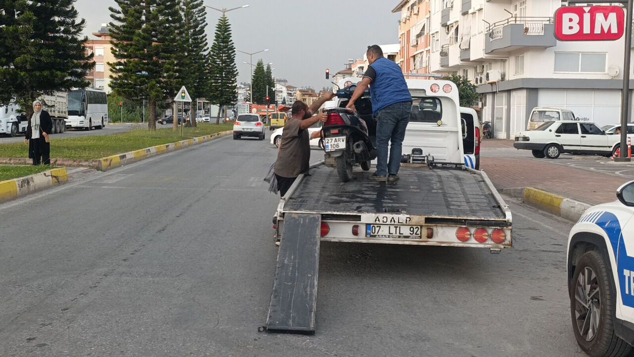 Ayrıca sürücünün kask takmadığı da belirlendi. Manavgat Emniyet Müdürlüğü Trafik Denetleme Büro Amirliği ekiplerince motosiklet sürücüsüne kask takmamak ve sürücü belgesiz araç kullanmaktan, motosiklet sahibine ise ehliyetsiz kişiye araç kullandırmaktan toplam 38 bin 347 TL para cezası uygulandı. Polis ekipleri, motosikleti trafikten men ederek, çekici vasıtasıyla yediemin otoparkına götürdü.
